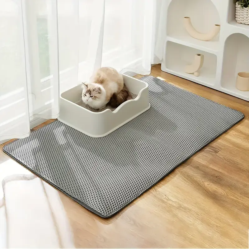 Mantén tu hogar limpio y libre de restos de arena con esta alfombrilla grande de doble capa fabricada en EVA resistente, es impermeable, antideslizante y a prueba de orina ideal para recoger los restos que caen del arenero.